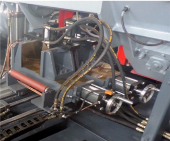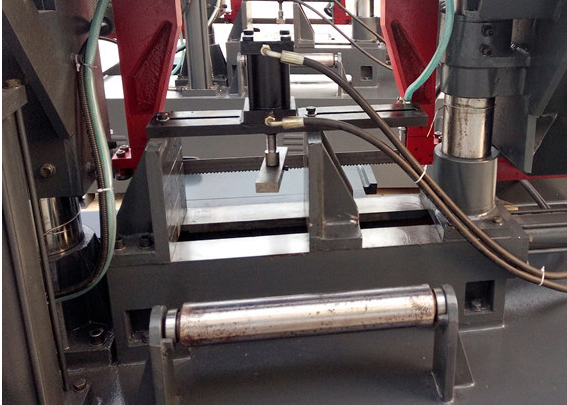 鋸床主要部件有:底坐、床身、立柱、鋸梁和傳動(dòng)機(jī)構(gòu)、導(dǎo)向裝置、工件夾緊、張緊裝置、送料架、液壓傳動(dòng)系統(tǒng)、電氣控制系統(tǒng)、潤滑及冷卻系統(tǒng)。其操作簡單耐用,液壓系統(tǒng)和減速機(jī)均選用優(yōu)質(zhì)廠家提供,質(zhì)量穩(wěn)定。切削速度液壓控制,無極調(diào)速,方便快速。雙立柱結(jié)構(gòu),垂直升降,穩(wěn)定性高??筛鶕?jù)用戶要求自行設(shè)定任意旋轉(zhuǎn)角度,可調(diào)角度在0°—45°/60°左右,操作簡單。鋸床工件加緊為液壓加緊,一鍵式加緊手柄操作方便快捷。