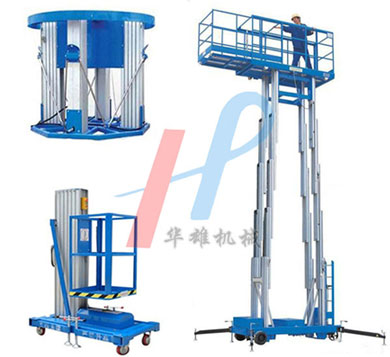 鋁合金升降機大致分為單桅升降機、雙桅升降機、三桅升降機和多桅升降機。鋁合金升降機采用高強度優(yōu)質(zhì)鋁合金材料,具有造型美觀、體積小、重量輕、運轉(zhuǎn)靈活,推行方便,升降平穩(wěn)、安全可靠等優(yōu)點,它輕盈的外觀能在極小的空間內(nèi)發(fā)揮最高的舉升能力。廣泛用于工廠、賓館、餐廳、車站、影劇院、展覽館等場所,是保養(yǎng)機具、油漆裝修、調(diào)換燈具、電器、清潔保養(yǎng)等用途的最佳安全伴侶。