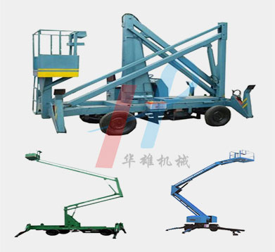 曲、折臂式升降機是多功能、多用途的作業(yè)裝置。通過大臂前端托架,可以快速安裝舉升裝置或載人平臺,實現(xiàn)物料舉升、起重吊裝和載人高空作業(yè)等功能,同時為擴展作業(yè)裝置以及各種工作裝置的快速切換提供了接口。